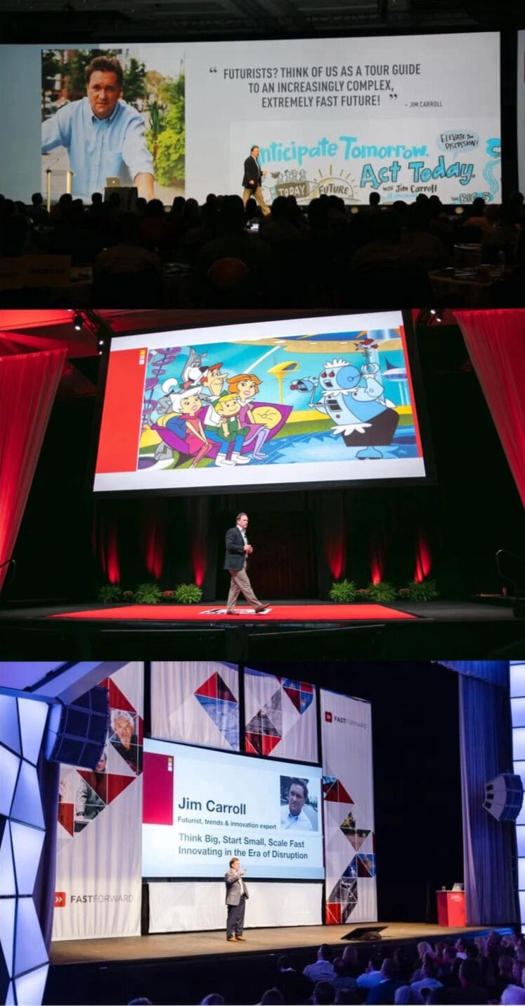 Futurist Jim Carroll is on a mission to help organizations understand how to align to tomorrow, today.He has been booked by CEOs of dozens of technology and media service companies worldwide, for his thought leadership on the future of their industry.“I help CEOs, senior executives, and association leaders achieve their strategic objectives by aligning them with a disruptive, accelerating future. It’s actionable, powerful leadership insight based on detailed, specific industry trends – delivered within a fast-paced keynote with a compelling motivational style!”